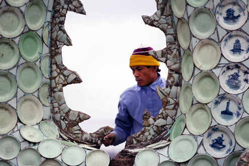 Đôi rồng gốm dài 35 mét, được làm từ 6.000 chiếc đĩa và hơn 4.000 chiếc cốc có nước men đặc biệt.
